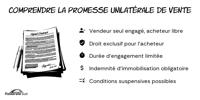 Elle se distingue du compromis de vente, où les deux parties s’engagent réciproquement. Ici, seul le vendeur est contractuellement engagé, tandis que l’acheteur garde la liberté d’acheter ou non le bien.